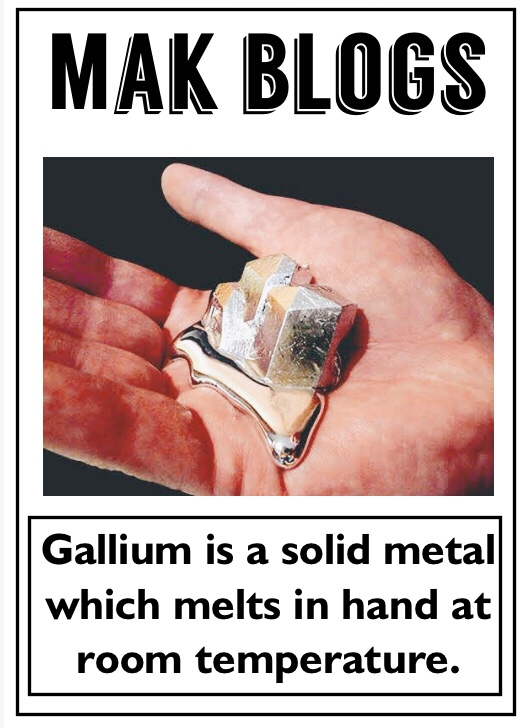 Gallium is a silvery metal and element number 31 on the Periodic Table, and it melts at 85.6 degrees Fahrenheit. That’s a temperature low enough for gallium to melt in your hand — and unlike the liquid metal mercury, Gallium is safe to play with, according to chemists.